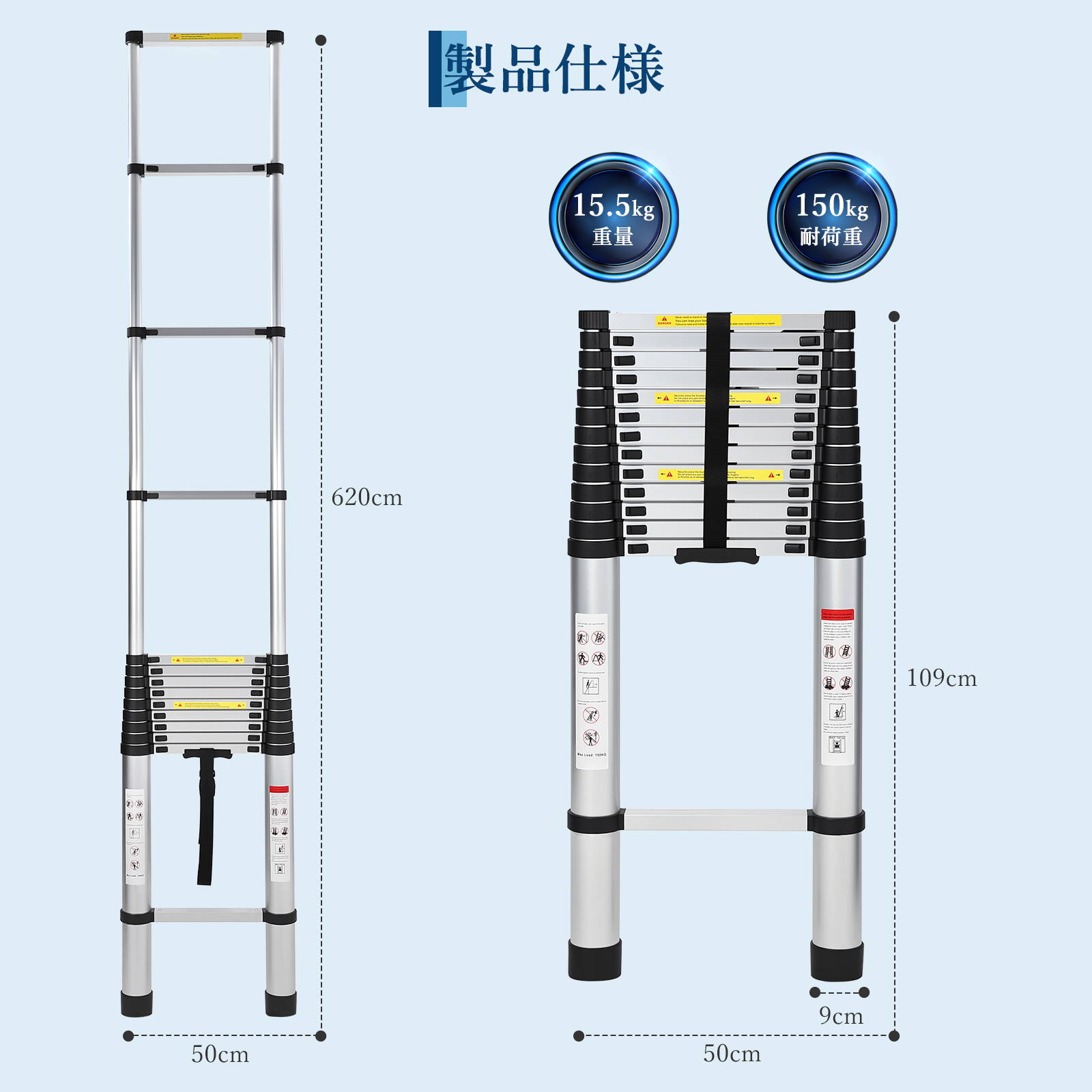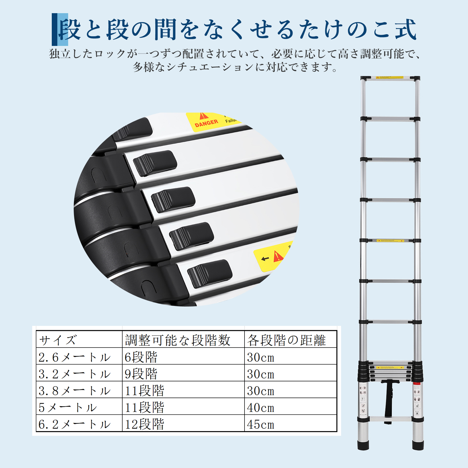 2.6m 3.2m 3.8m 5m 6.2m はしご 梯子 伸縮式