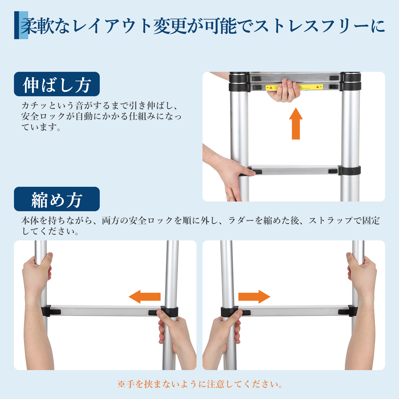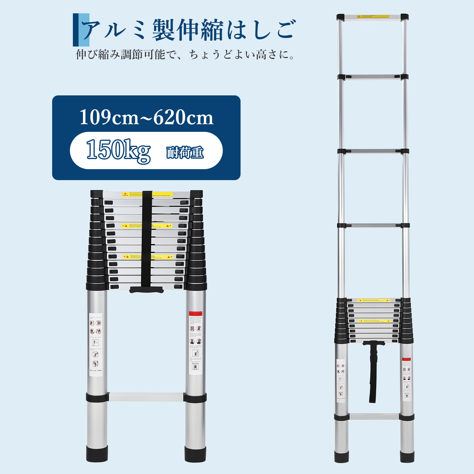 伸縮はしご はしご 2m 3m 4m 5m 6m アルミ製 梯子 耐荷重150kg 折り畳み 安全ロックスライド式 コンパクト 持ち運び容易 屋内 屋外 アルミ梯子 多機能