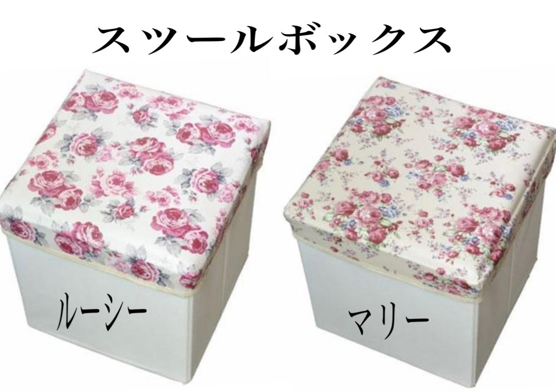 収納スツール 収納ボックス スクエア ローズ マリー ルーシー 座れる 折りたたみ コンパクト バラ 薔薇雑貨 インテリア雑貨 椅子 チェア オットマン 足置き