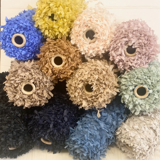 他素材の糸と引き揃えたり、編物などの手芸品(バッグ・ラグマット)は勿論、織物など幅広い用途にお使いいただけます。