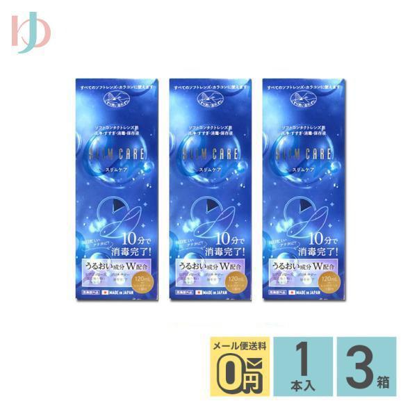 スリムケア 120ml レンズケース1個付 3箱 エイコー EIKO 洗浄 すすぎ 消毒 保存液 ソフトコンタクトレンズ用 時短 10分消毒 うるおい成分 ポイント利用 お試し商品サンプル