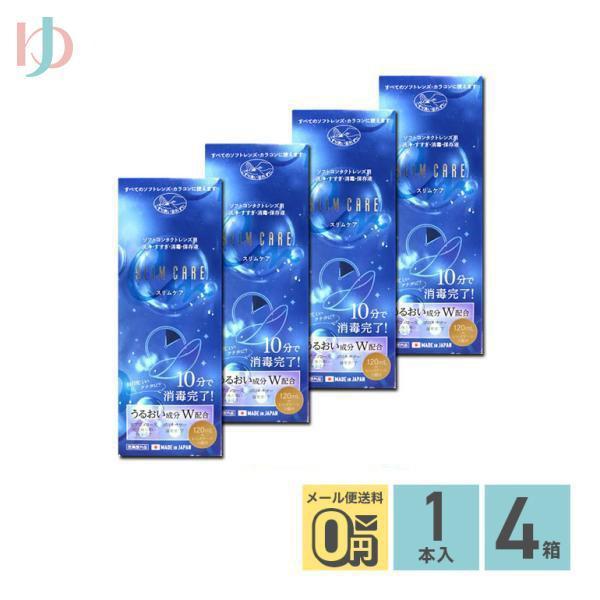 スリムケア 120ml レンズケース1個付 4箱 エイコー EIKO 洗浄 すすぎ 消毒 保存液 ソフトコンタクトレンズ用 時短 10分消毒 うるおい成分 ポイント利用 お試し商品サンプル