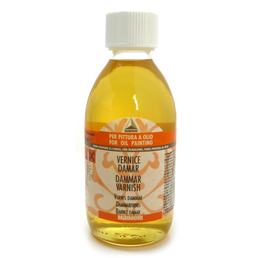 【主成分】ダンマル樹脂(40%) テレピン アルコール (可燃性・有害) 【特性/使用法】伝統的な仕上用天然ワニス。黄変します。 自然の琥珀色や沈殿物は完成作品に影響はありません。絵具に一層の艶と輝きを与えます。