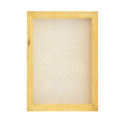 絵絹を木枠に貼り付け、ドーサ引き加工を施したものです。 絵絹(正絹)ドーサ引き。枠張り済み。 外寸:約488×398mm 17mm厚