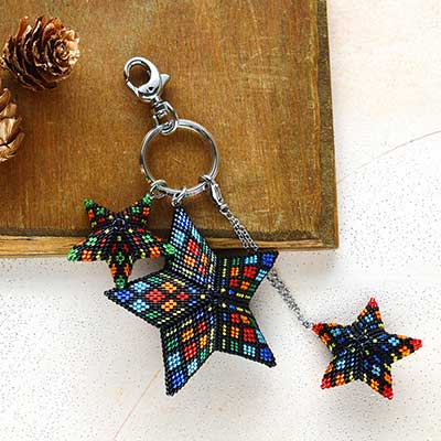 ステンドグラスをイメージして、色とりどりの銀引きのビーズを使用!ペヨーテステッチの応用で作るお星さまです。