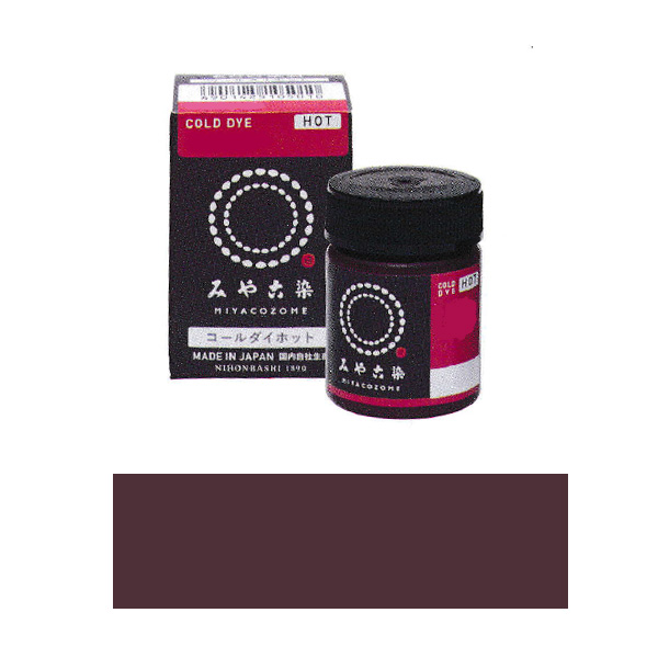 コールダイホット20g 粉体染料ポリ瓶入り、説明書付き ・湯(85℃以上)で濃く染まる、布用ECO染料です。 ・糸、麻、レーヨン、キュプラから絹、毛(ウール)、ナイロン、ポリウレタン、ポリエステル、混紡品が染まる染料 染められる目安:約250gの白生地(Tシヤツ約2枚分) ポリエステル混紡品はポリエステル繊維濃色染め用濃色促進剤を使い、加熱染色(90℃程度)します。 ナイロンボタンやポリエステルボタンなど樹脂成型品にも使えます。 注意事項 コート・ジャケット・帽子・スニーカー・バッグなどで撥水加工を施しているものは水を弾くため染色に不向きです。また、洗濯表示に水洗い不可のものも同様に染色できません。 涼感素材などの特殊素材のものや布以外の素材を含む複合品などはボンディング加工が施している場合があるため、あらかじめ、メーカーにお湯に30分程度浸けても変色・変形・損壊・剥離などすることがないか、ご確認の上、染色ください。※モニター環境により、実際の色合いと多少異なってみえる場合があります。