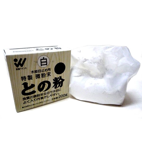 との粉はポアーステイン(着色剤)と混ぜ合せて使用すると、目止め着色が同時にできます。との粉は、ポアーステインの色によって使い分けます。鮮明な黄・オレンジ・レッド・グリーン などには白色を使用し、その他の茶系統の色には黄色のとの粉を混ぜます。※混合比率・・・との紛、約100gに対しポアーステイン約120mL●内容量・・・200g 【爆買】
