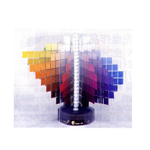 A5判 ラミネートチャート10枚(10色相)、色コマ(14×17mm)両面貼付、有彩色298色、明度10段階