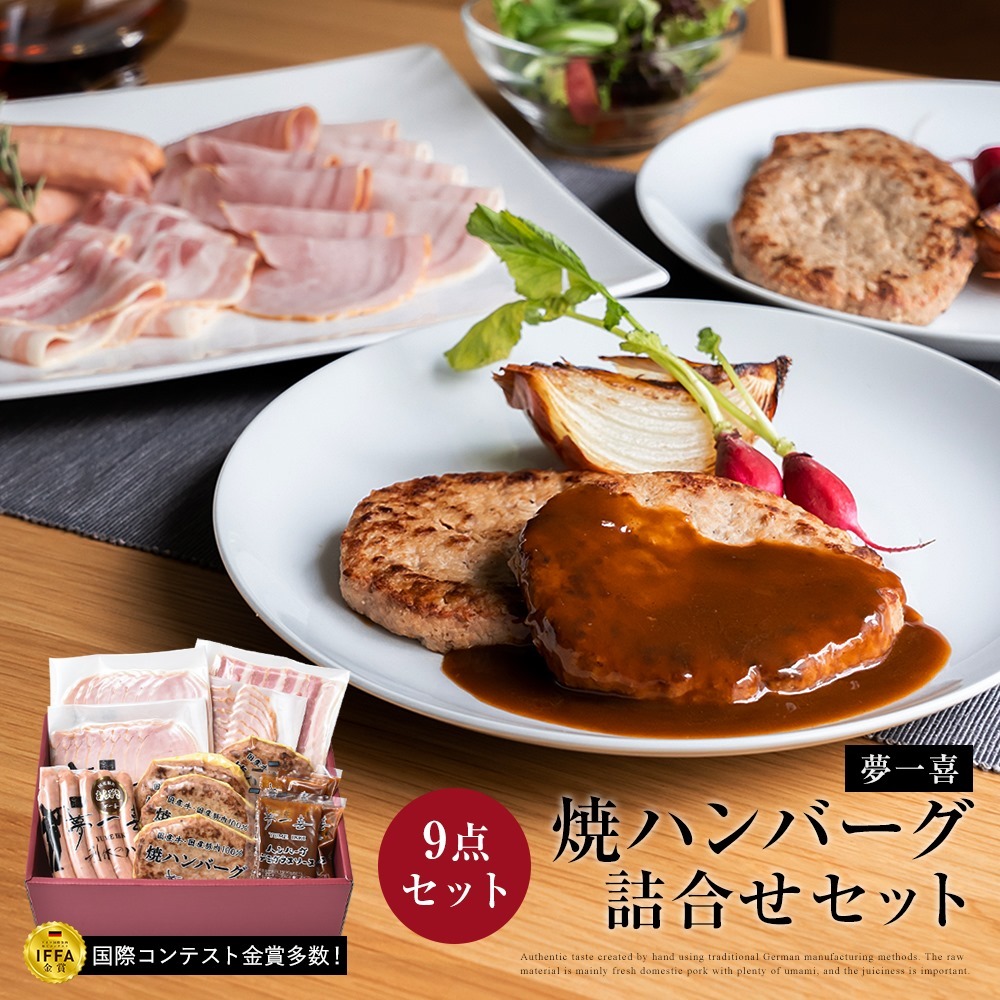 | 商品名 | 夢一喜 焼ハンバーグ・ハム・ウインナー詰合せ 9点セット |