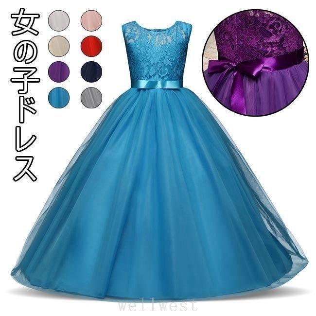 キッズドレスレースワンピースロング丈リボンチュールピアノ発表会披露宴結婚式ジュニアドレス花柄夏春年春新作