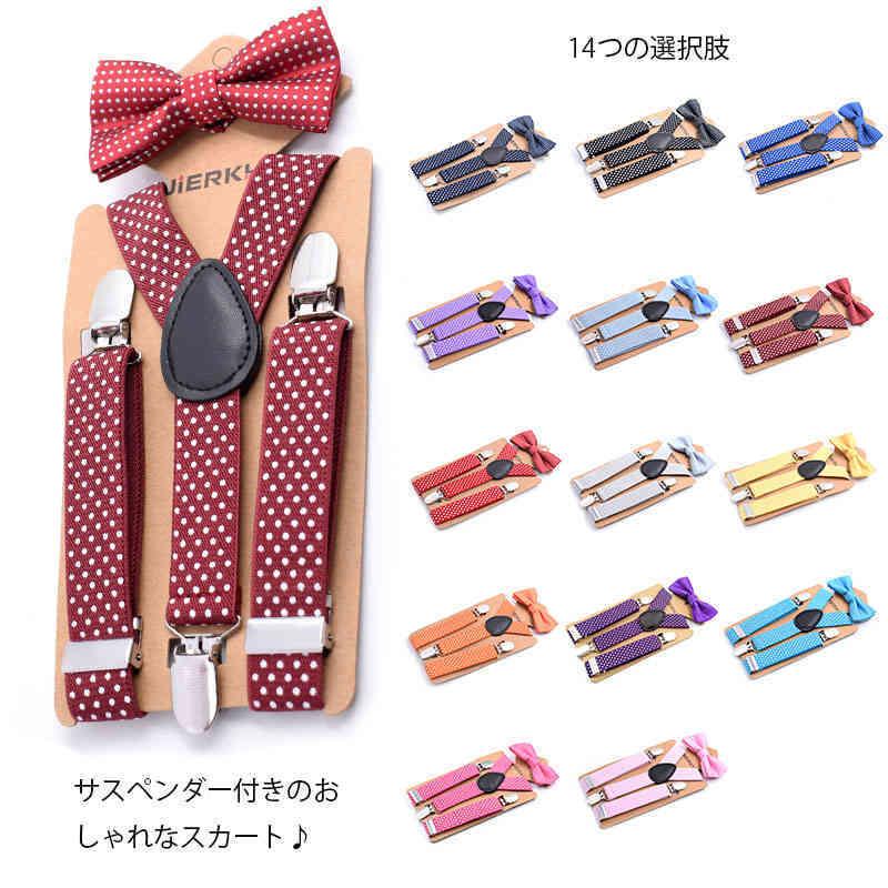 子供用サスペンダー 蝶ネクタイセット Y型サスペンダー キッズ フォーマル Y-バッグ 吊りバンド 男の子 女の子 ドット柄 正装 ズボン調整 長さ調