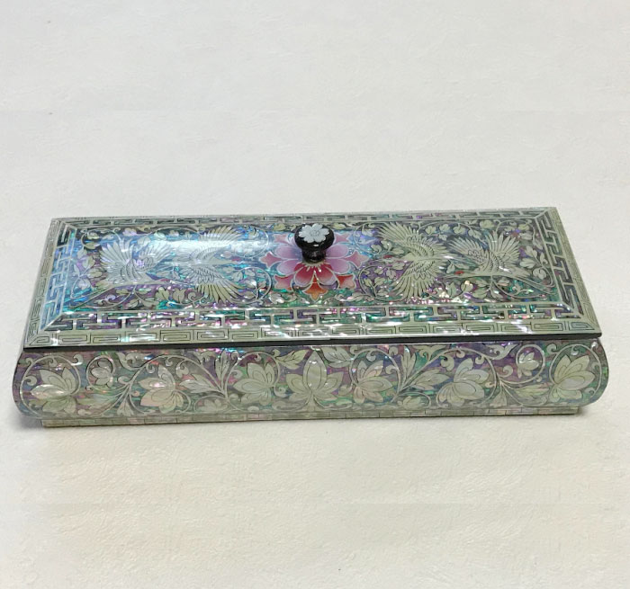 縁起の良い高級漆に螺鈿の鶴柄を施した素敵な韓国カトラリーボックス。