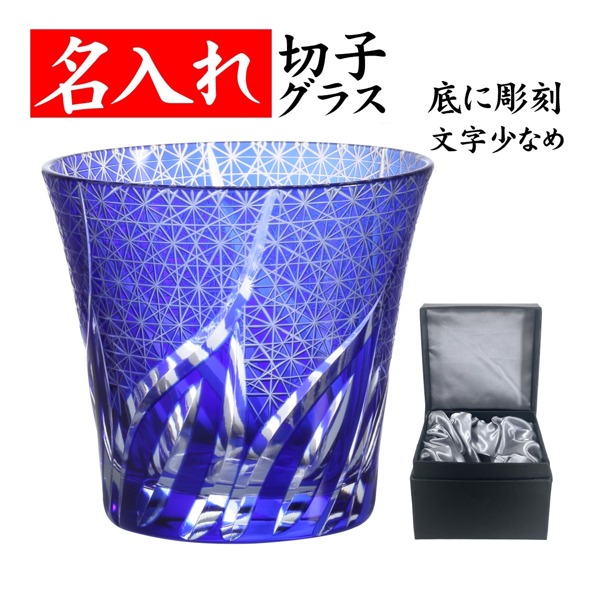 退職祝い 男性 プレゼント 還暦祝い おしゃれ 切子グラス 名入れ 叙勲のお祝い 品物 古希のお祝いの品 60代 70代 ウェーブ 青 文字数少なめ