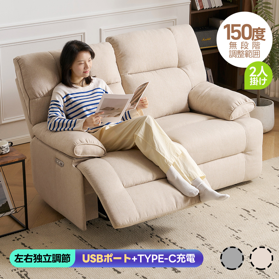 USB+TYPE-C充電可能★150°調整 贅沢 リクライニングソファ 2人掛け 電動 オットマン一体 パーソナルチェアー 電動リクライニング 電動ソファ 左右調節 耐圧分散