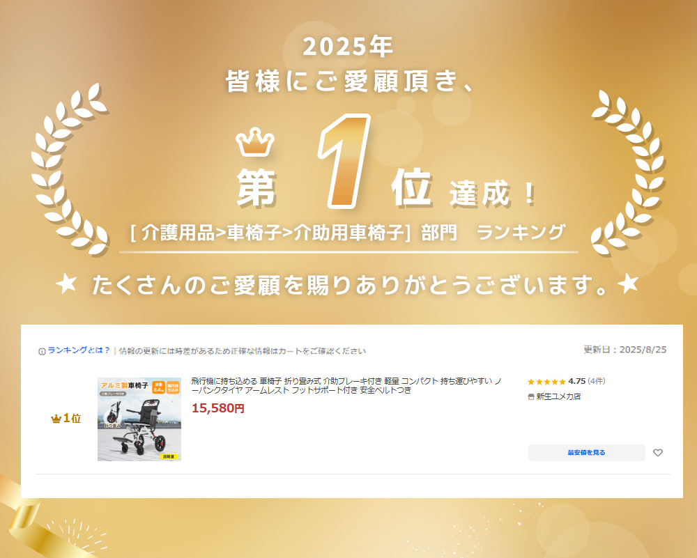 飛行機に持ち込める 車椅子 折り畳み式 介助ブレーキ付き 軽量 コンパクト 持ち運びやすい ノーパンクタイヤ アームレスト フットサポート付き 安全ベルトつき