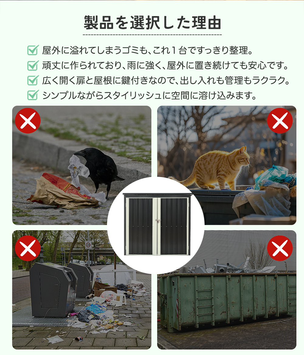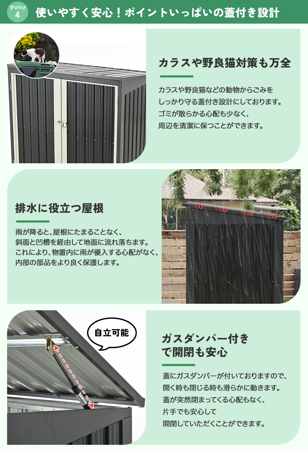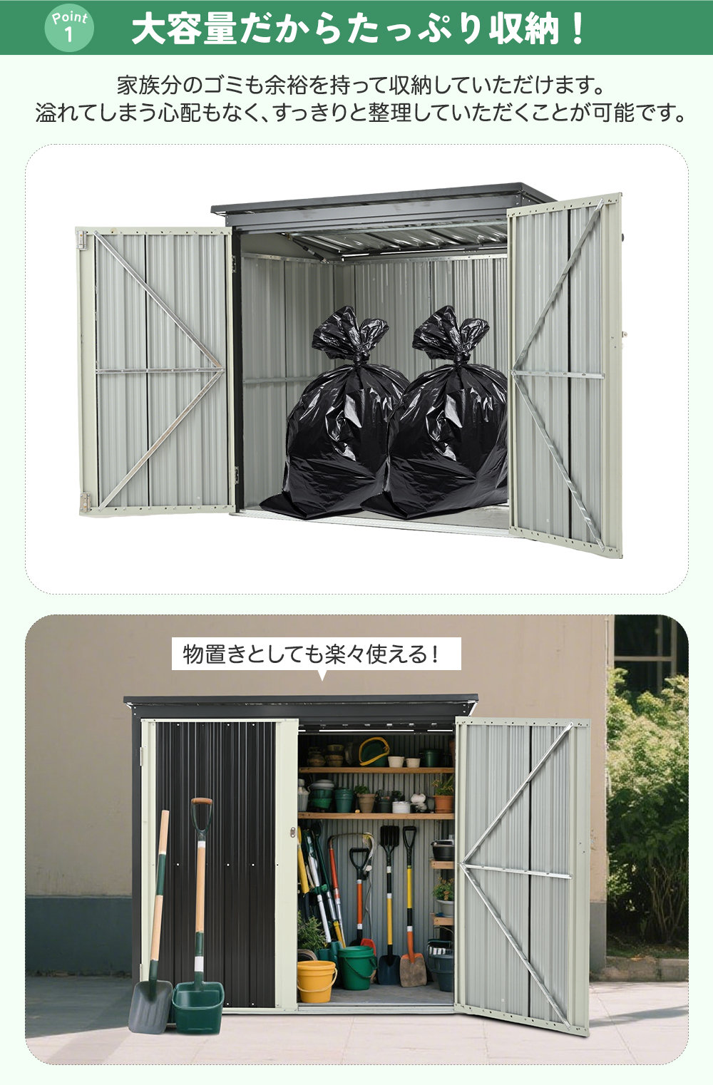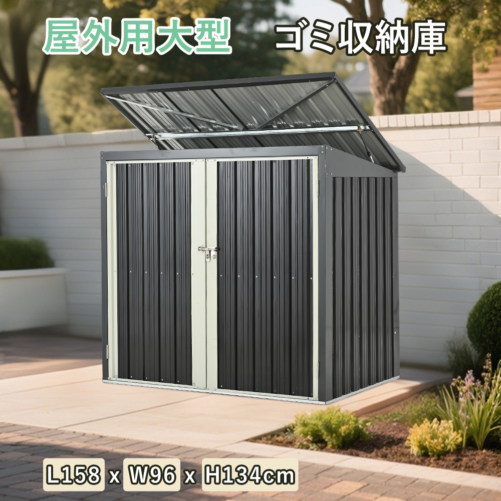 25年新作 ゴミ収納庫 物置き スチール物置 ゴミストッカー 大容量 158*96*134cm 収納 物置 屋外収納庫 施錠可能 大型 屋外 ゴミボックス 倉庫 DIY 頑丈 防水防銹