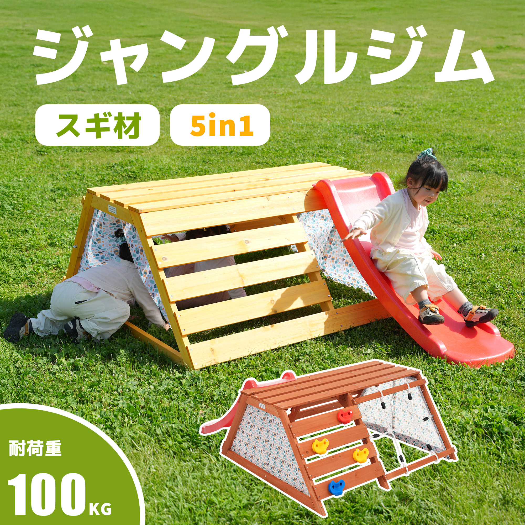 在庫処分★【5in1 スギ材屋外ジャングルジム】ジャングルジム 木製 多機能 屋外遊具 組み立て簡単 防水 家庭用 大型遊具 キッズ 3歳以上 ギフト