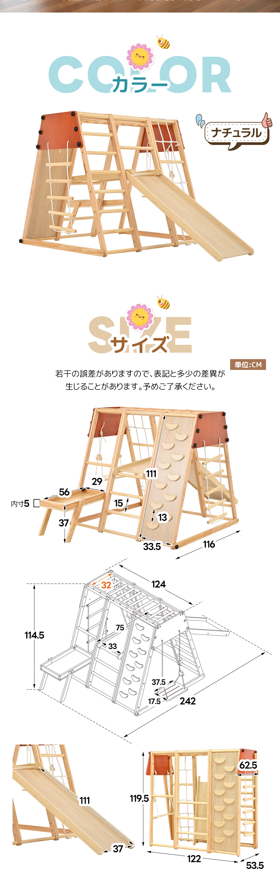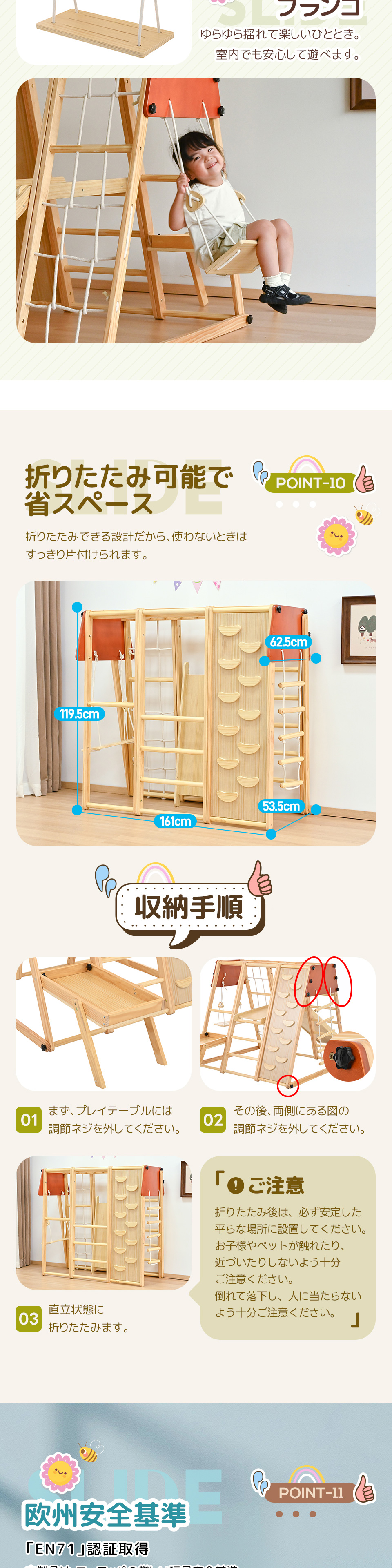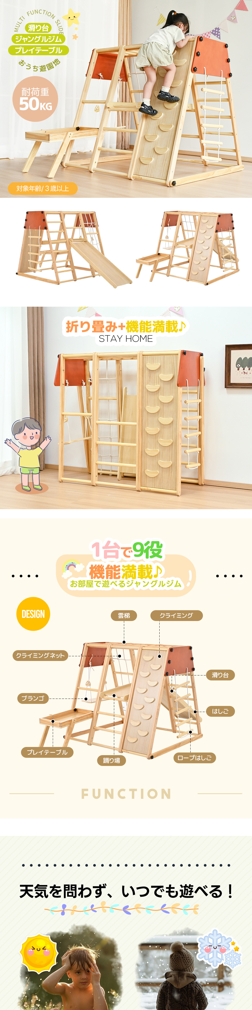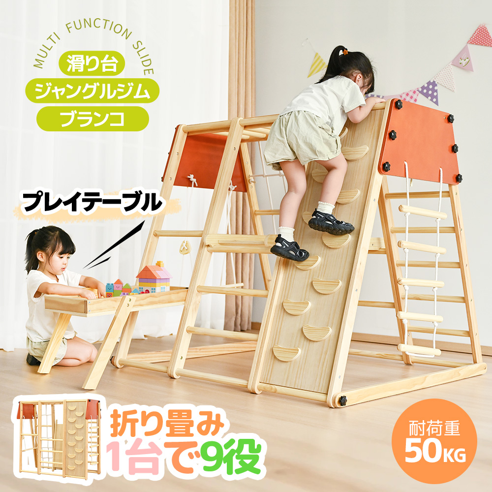 【遊ぶテーブル付き】ジャングルジム 折り畳み 天然木 ブランコ 滑り台 大型遊具 木製 折りたたみ コンパクト キッズ 子供 誕生日 プレゼント