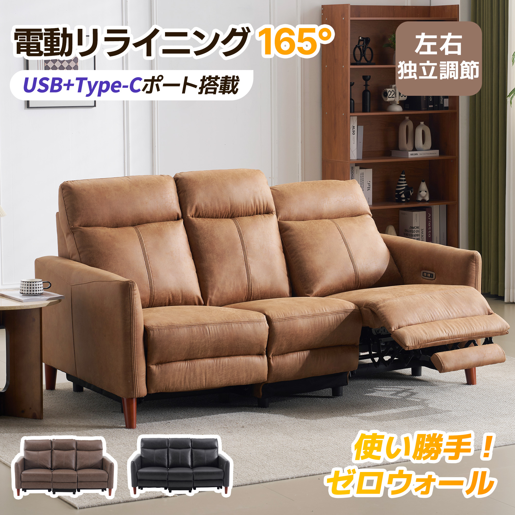 【進化!壁につけて設置可能】156°調整 贅沢 リクライニングソファ 3人掛け 電動リクライニング 充電口 USB テーブル付き 電動 リクライニング スマホ充電 PU