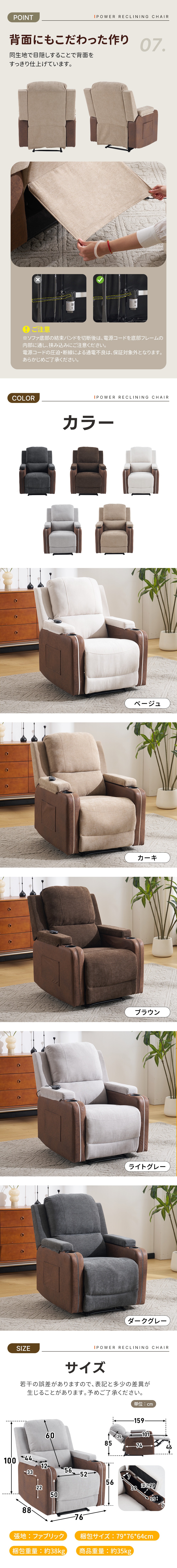 ベージュ23980円【リモコン操作 】165°調整 リクライニングソファ リクライニングチェア 1人掛け 電動リクライニング 収納 ドリンクホルダー ソファ 一人暮らし