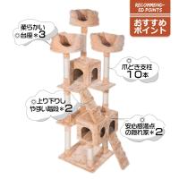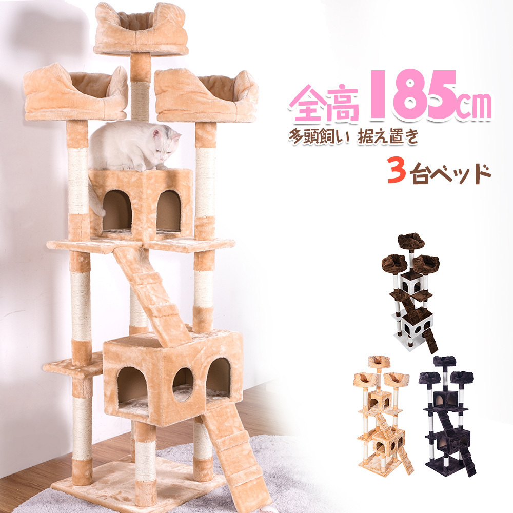 キャットタワー 据え置き 全高185cm 猫用 おしゃれ 爪とぎ 猫タワー 猫 タワー 猫用 猫用品 多頭飼い 麻紐 上りやすいネコハウス付き 隠れ家 多頭飼い