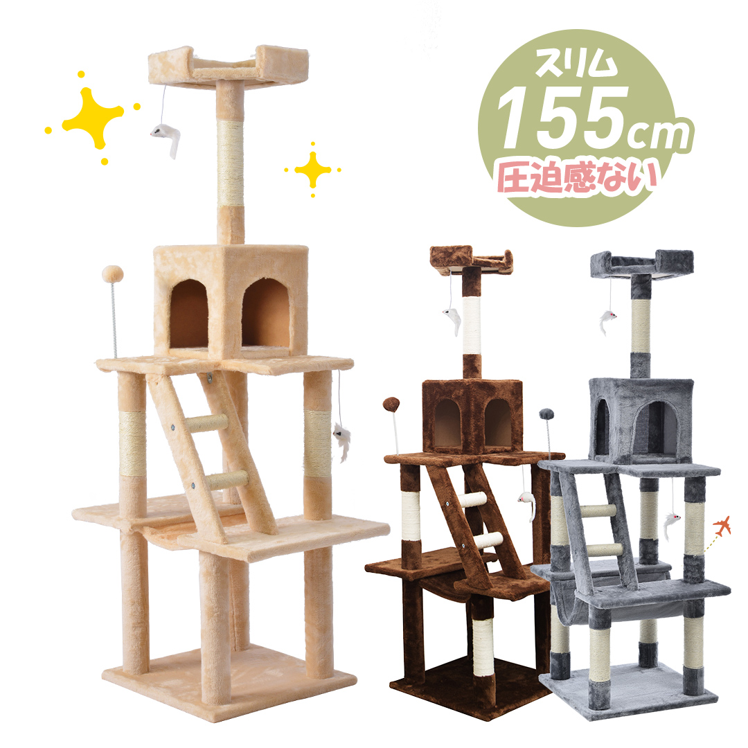 キャットタワー 据え置き ハンモック付き 全高155cm 猫タワー おしゃれ 省スペース 麻紐 爪とぎ 猫 タワー 多頭飼い