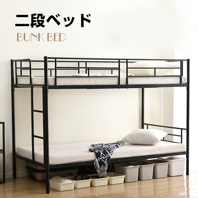 二段ベッド パイプベッド 2段ベッド ロータイプ 頑丈 垂直はしご スチール 耐震 シングル 子供ベッド