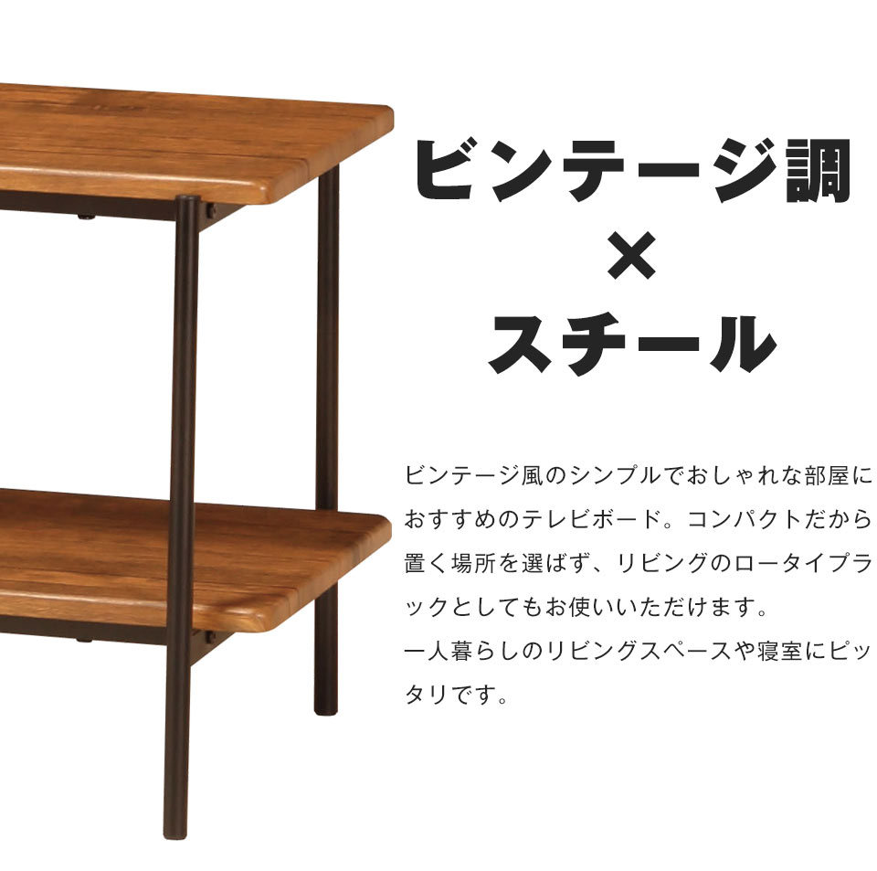 ●商品説明:コンパクトだから置く場所も選ばない!寝室や一人暮らしにおすすめのリビングボード。木目柄とスチールの組み合わせがおしゃれなリビングにしてくれます。2段になっているので、DVDなどのAV機器、PS5などのゲーム機器を置くことも可能です。