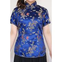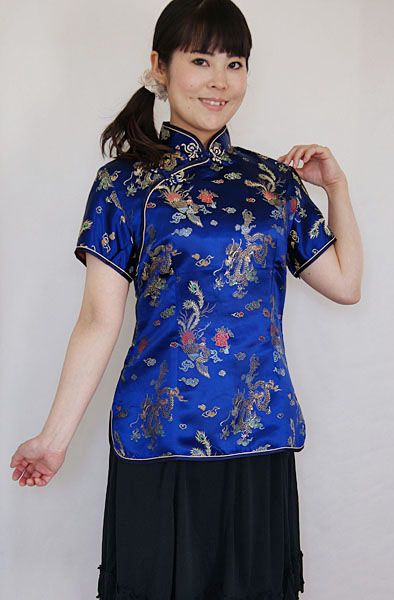 チャイナ服 半袖 パーティ衣装 レディース 母の日ギフト 青色 【龍の模様】 M L メール便