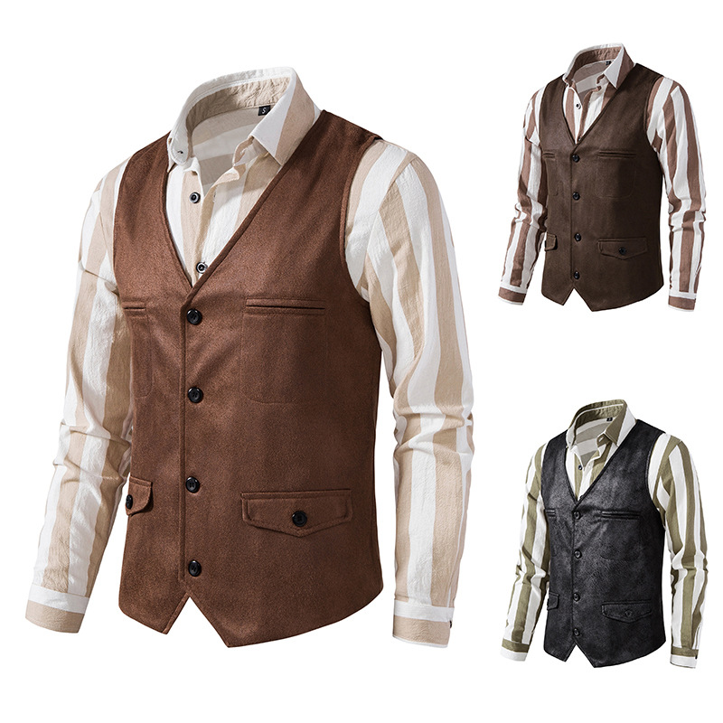Vネック スエードベスト 無地 スーツベスト メンズ 前開きベスト ビジネス ノースリーブ トップス