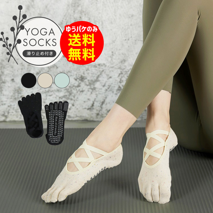 ヨガソックス 滑り止め 5本指 レディース 靴下 つま先あり ホットヨガ ピラティス ジム クロスデザイン トレーニング ゆうパケットのみ送料無料