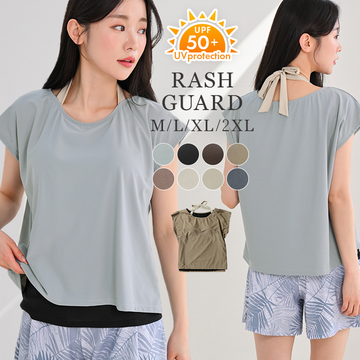 水着レディース 体型カバー タンキニ 一体型 トップス 単品 ラッシュガード 半袖 カップイン 大きいサイズ 水陸両用 3L LL 2L L M ママ UVカット