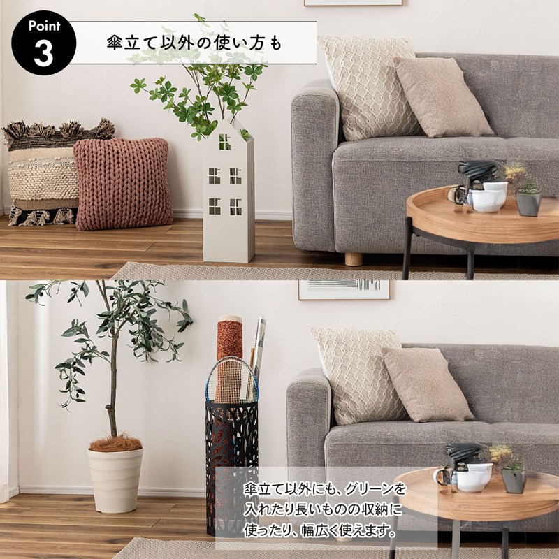 ●傘立て以外にも、グリーンを入れたり長いものの収納に使ったり幅広く活用。