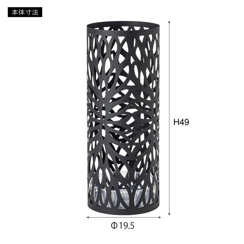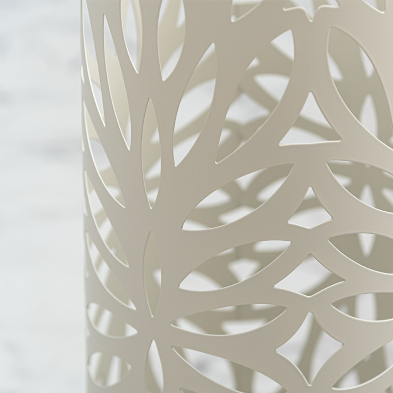 ●本体はリーフ柄で型抜きデザインを施した、オブジェのようなシルエットの円柱タイプ。