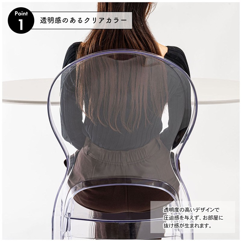 ●透明度の高いデザインで圧迫感を与えず、お部屋に抜け感が生まれるチェア。