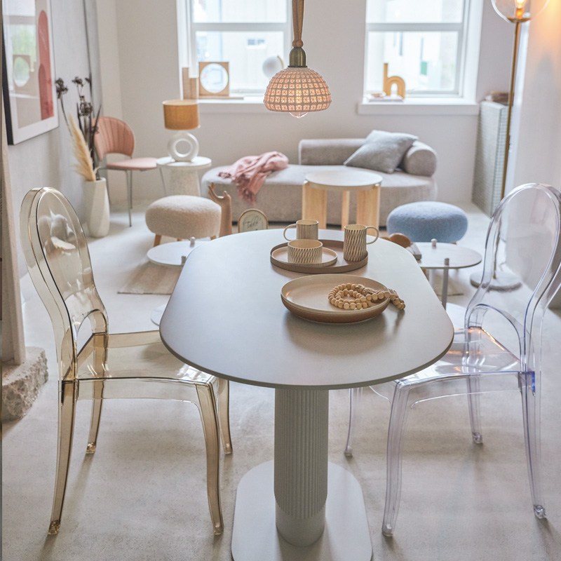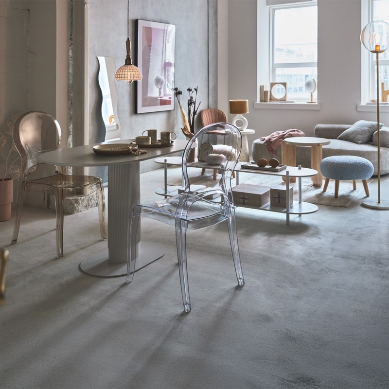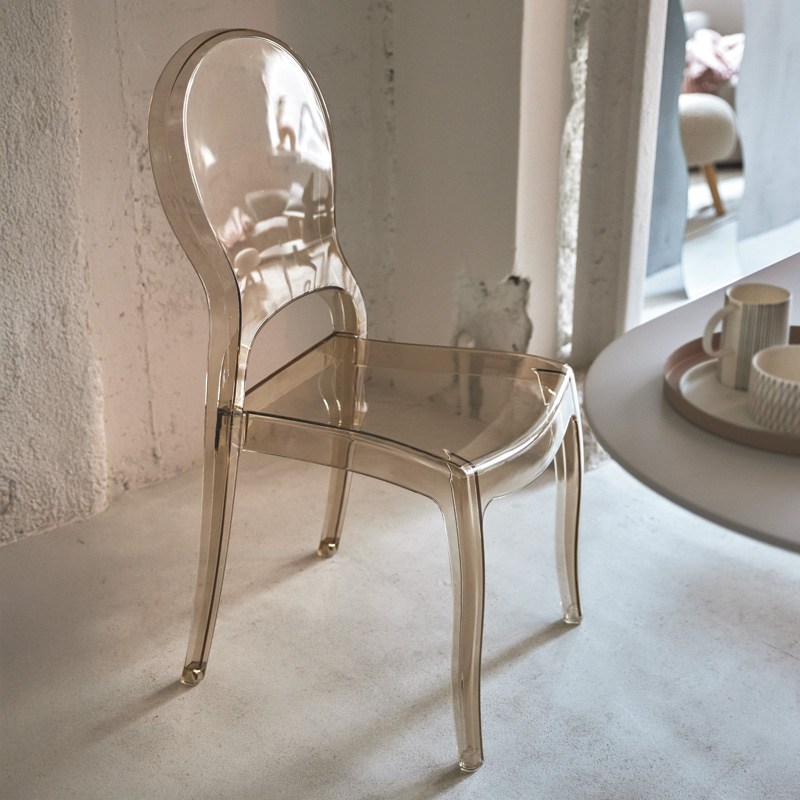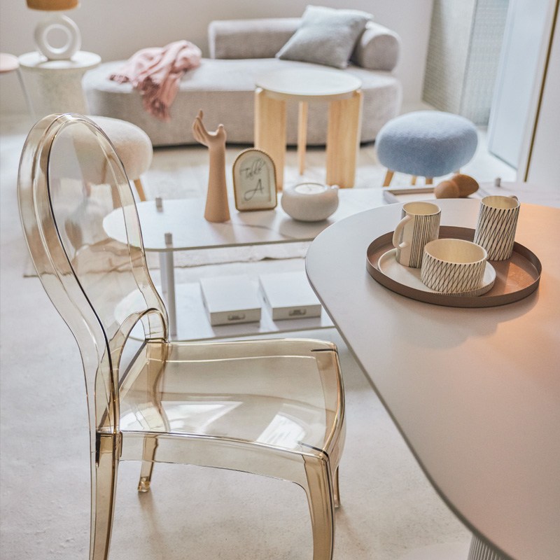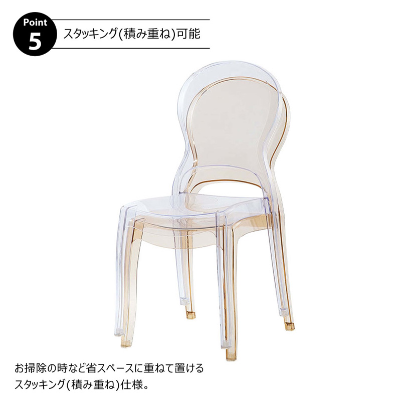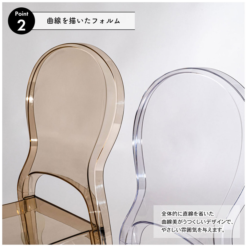 ●透明度の高いクリアカラーのチェア。