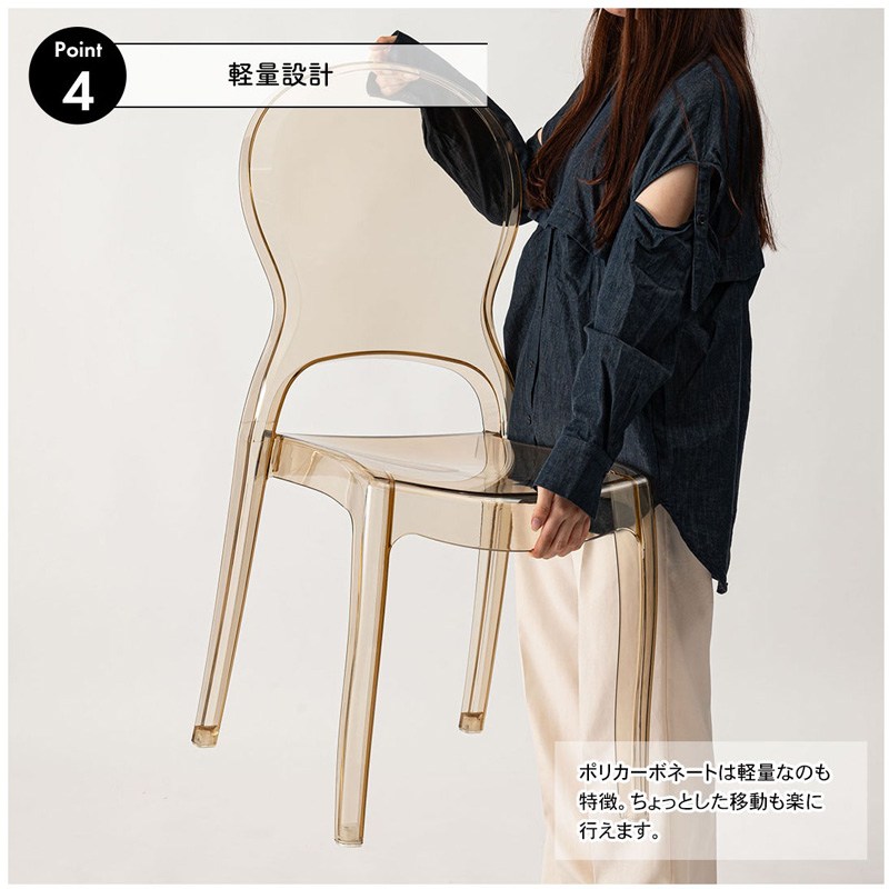 クラルテチェア ダイニングチェア 食卓 ダイニング チェア クリアチェア デスクチェア ポリカーボネート 軽量 軽い 耐久性 クリア 透明 椅子 モダ