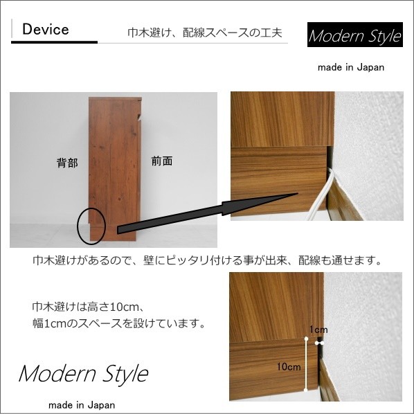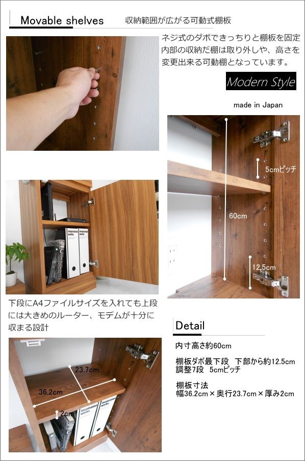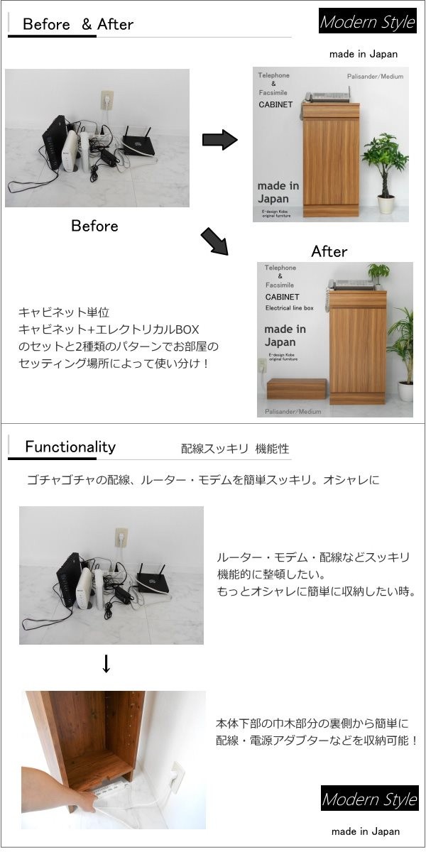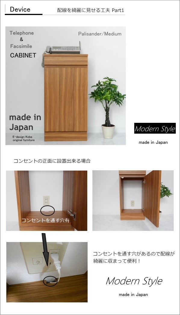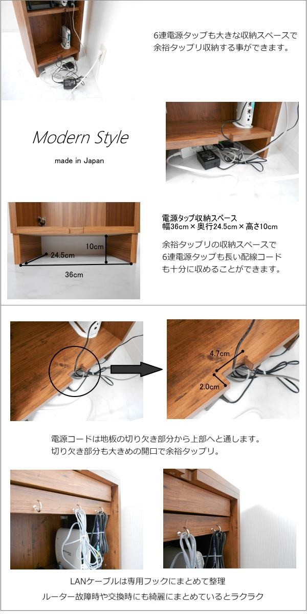 アラモードはモデム、ルーター等をキャビネトに収納できコンセントコードもスッキリまとめる事が出来ます。