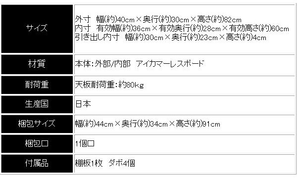 【サイズ】:外寸(約):幅40×奥行30×高さ82cm