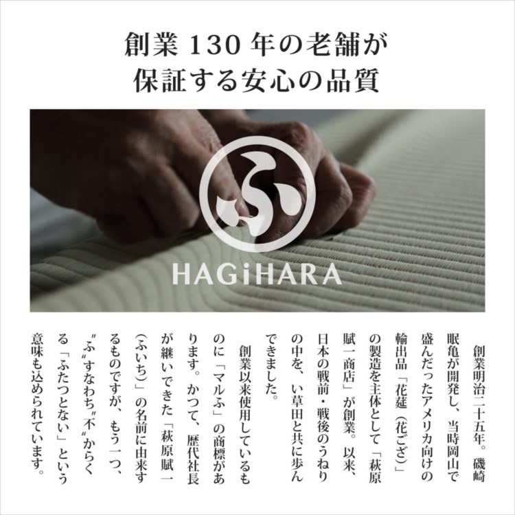 畳と同じ織り方の「引目織り」は、たて糸が表に出ないので汚れにくく表面も滑らか。ごみがたまりにくく、お手入れしやすいのも特徴です。