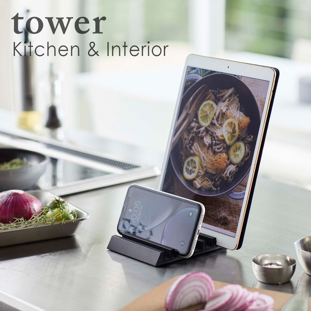 タブレットスタンド タワー ホワイト ブラック 山崎実業 北欧 モノトーン おしゃれ 人気