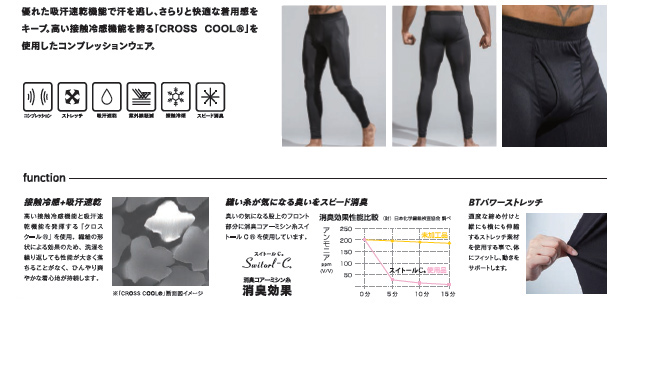 高い接触冷感機能を誇る「CROSS COOL」を使用したコンプレッションウエア