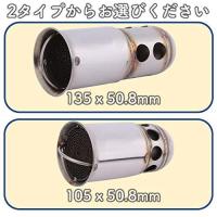 | 主な仕様 | 高い消音性能のインナーサイレンサーです。105mmと135mmの2サイズをご用意致しましたので、マフラーサイズ等によりお選びください。インナーサイレンサーは、マフラーの出口に取り付けることで、排気音量を下げることができるアイテムです。脱着できるため、大音量で迫力のある排気音で、ご近所迷惑を気にされる方におすすめです公道ではインナーサイレンサーを装着して走行し、サーキット等では外して走るといった楽しみ方もでき、時と場合に応じて排気音量を調整できます。インナーサイレンサーにサビや腐食等の劣化があると、サイレンサーが排気により外れてしまう場合があるので、装着後は定期的チェックをお勧めいたします。サイズ(約): 105 x 50,8mm |