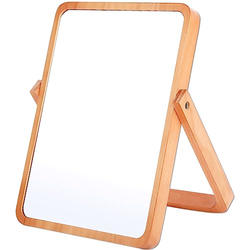 卓上ミラー 木製 スタンドミラー 木製フレーム 化粧ミラー メイクミラー 卓上鏡 スタンド式 ミラー 18.5x26cm ブラウン