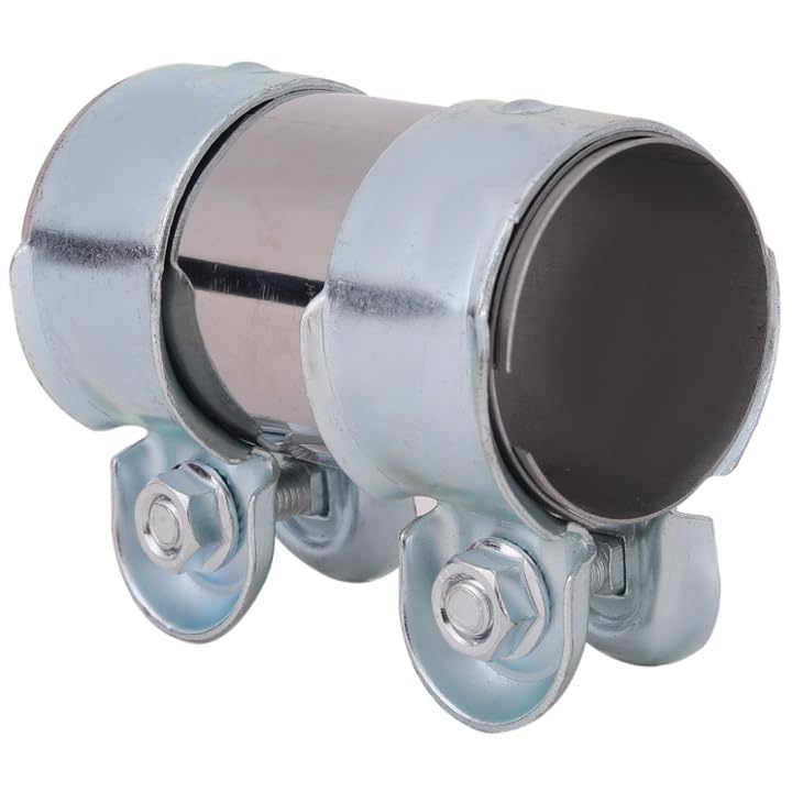 溶接機不要で同じエキゾースト径同士の接続に利用可能です。二つのボルトがしっかりと締め付けます。