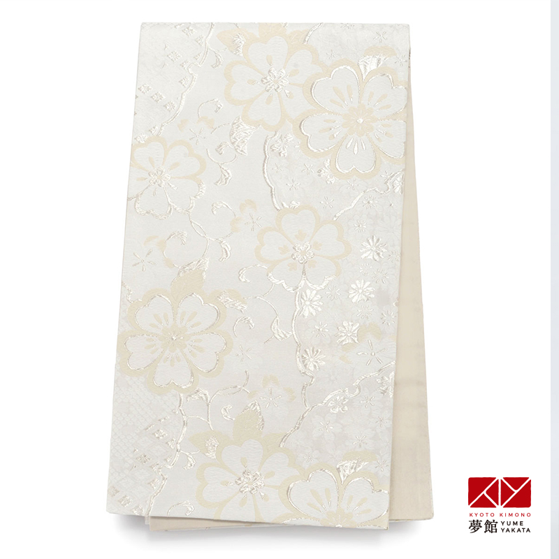 帯 レンタル 訪問着用帯 白 雪輪取りに桜 B2092
