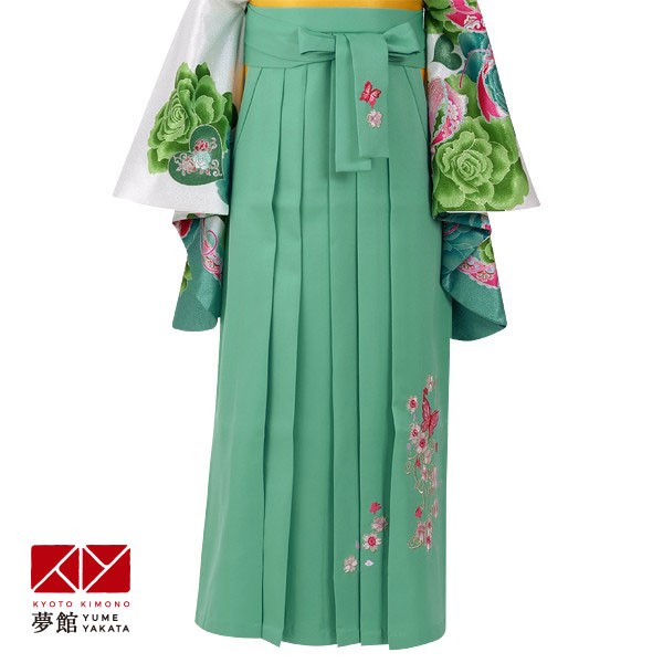 袴 単品 レンタル 卒業式 大学 小学生 卒園 ミントグリーン×蝶 刺繍(定)美容室・着付け会場への直送OK P081-S