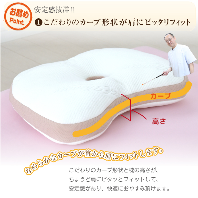 へこみが頭を安定させ、快適におやすみ頂けるでしょう。優しい柔らかさの枕です。
