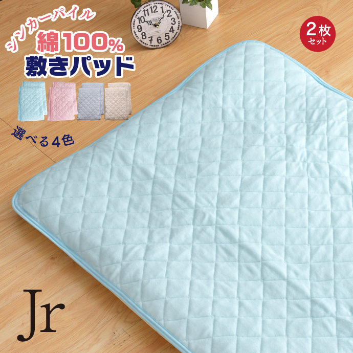 【お得な♪同色2枚セット!!】綿100% シンカーパイル生地の敷きパット ジュニアサイズ 約85×185cm