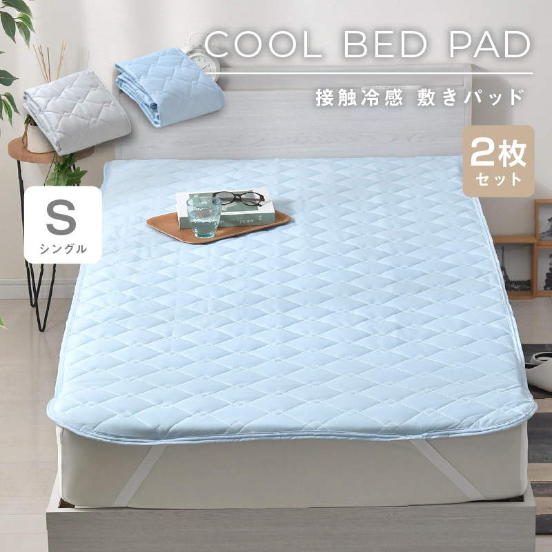 【同色2枚セット】冷感 敷きパッド シングルサイズ(約100×205cm)